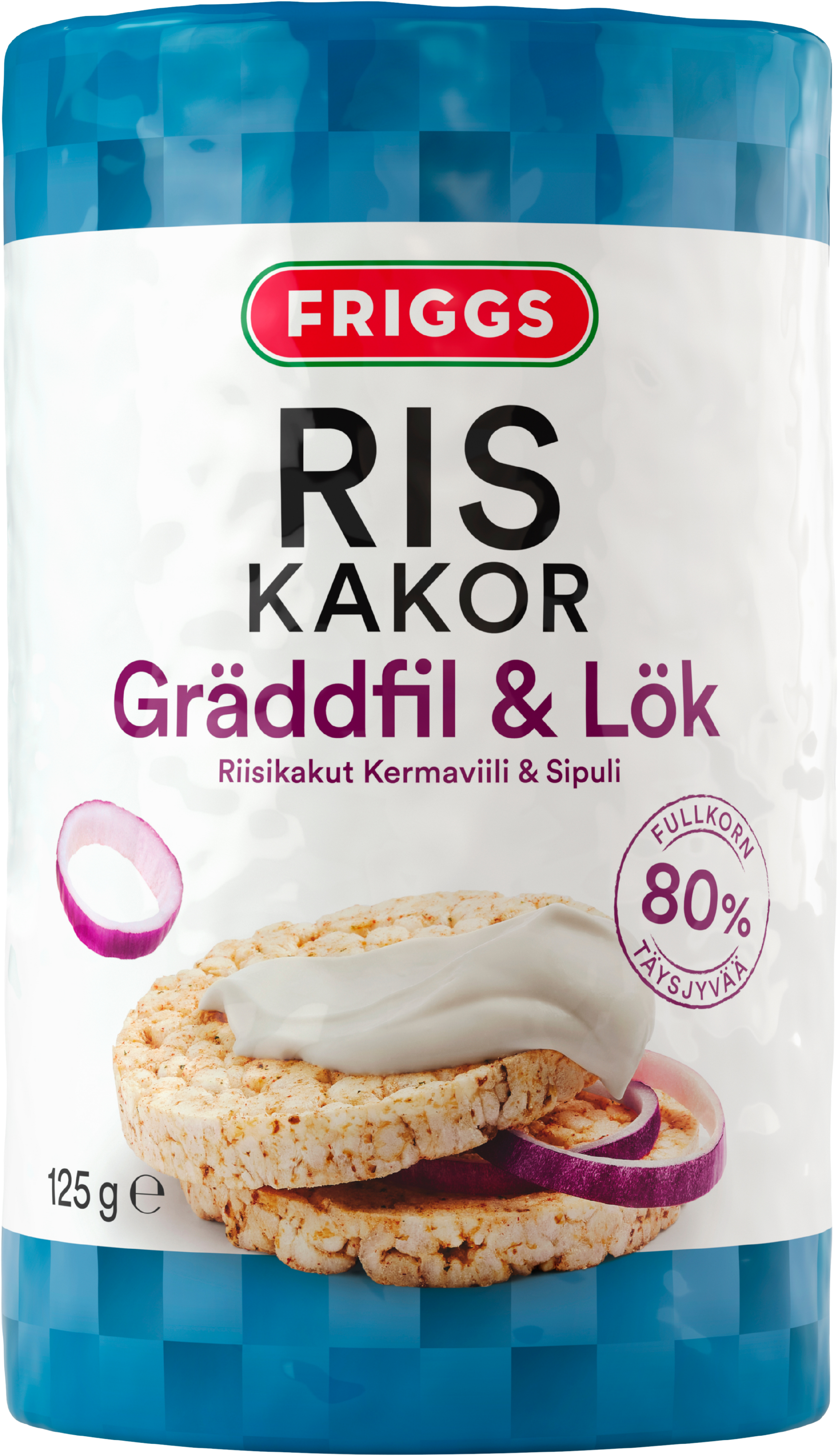 Friggs Riskakor Gräddfil & Lök har en god smak av gräddfil och lök. Goda att njuta som de är eller med pålägg. Glutenfria och rika på fullkorn. Passar perfekt som snack eller mellanmål.