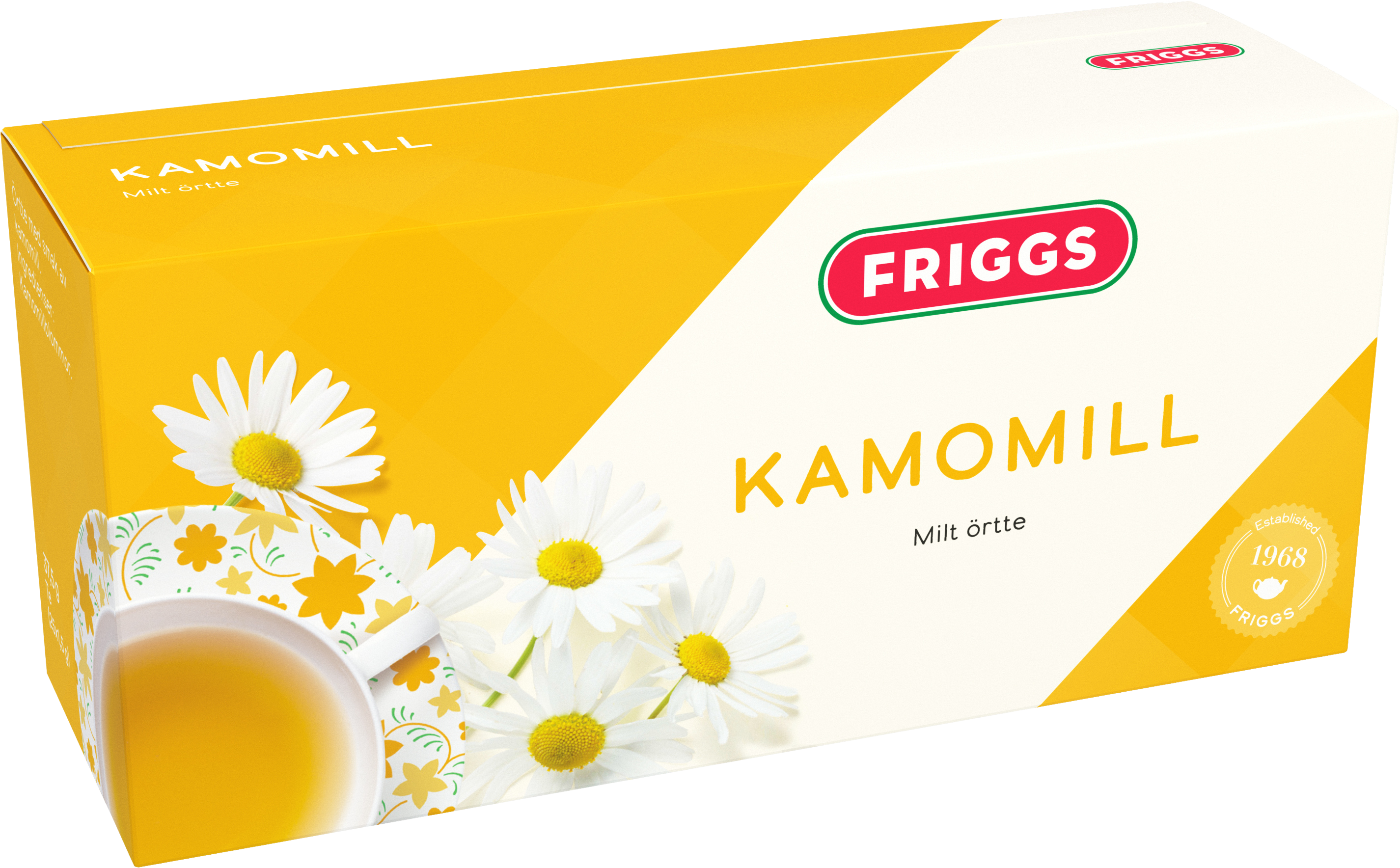 Friggs Kamomill Te är ett naturligt örtte gjort på kamomillblommor. Är naturligt koffeinfritt och passar att dricka även på kvällen.